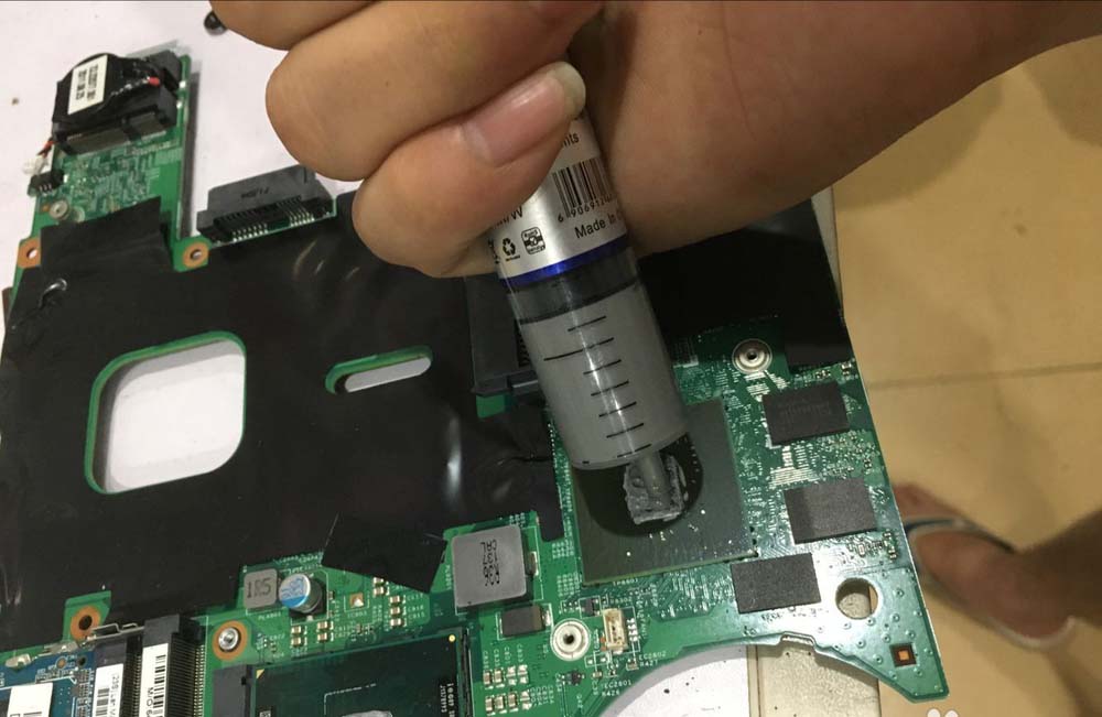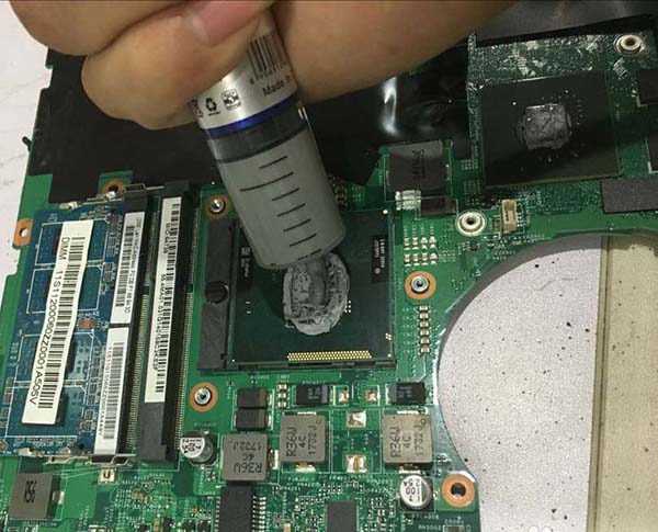 8、在CUP和GPU上面涂上點硅脂。用小紙片刮平。不用太多硅脂