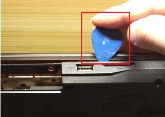 4、GE62 2QC-264XCN的A面和B面之間無任何螺絲固定,全卡扣設計,需要注意的是B面后面上下各有一條雙面膠加固,拆的時候一定要注意,切記用力。