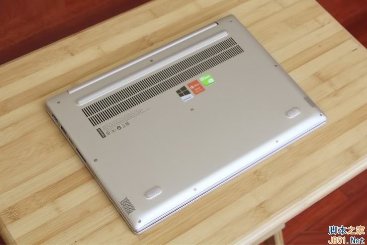小新·Air Pro 機身底部的設計同樣簡潔,兩個揚聲器分別位于前端的左右兩側,兩個短小的橡膠腳墊和貫穿左右的橡膠腳墊讓底殼與桌面之間形成了明顯的縫隙,既可以輔助散熱,又能夠防止金屬底殼被劃傷。此外,小新·Air Pro 對細節的處理也非常到位,底殼上的螺絲也是金色的,整體的質感很好。