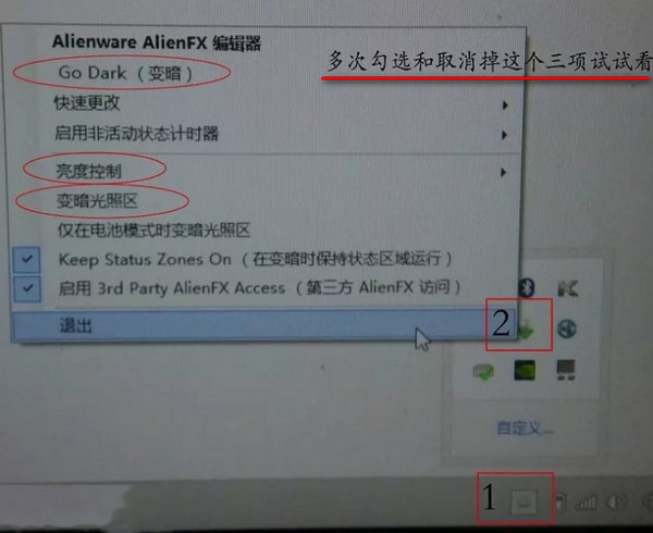 使用外星人筆記本的過程中。鍵盤燈光、logo燈光突然全部都不亮的了,打開和關閉FN+F12,也沒有任何反應!