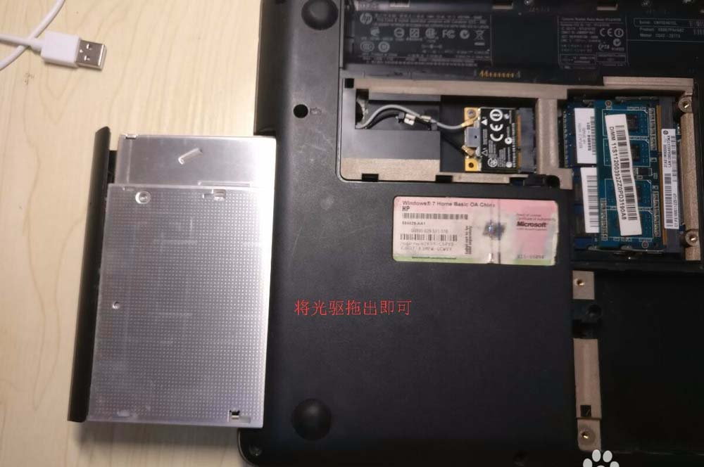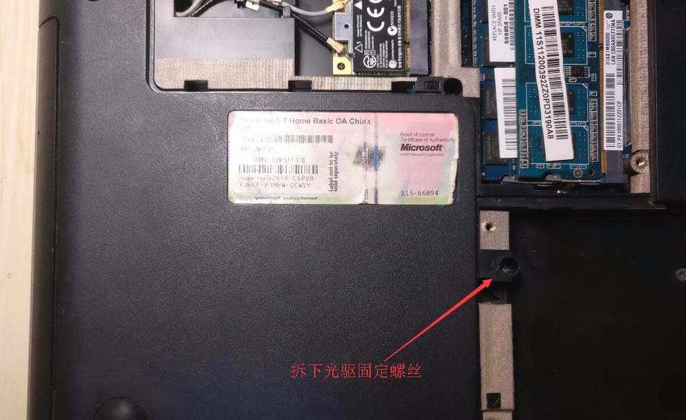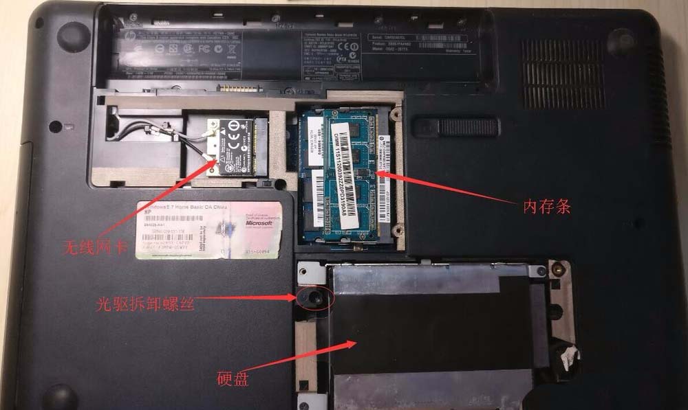 1、拆卸后面板,拆下電池,看到內存條,網卡,硬盤