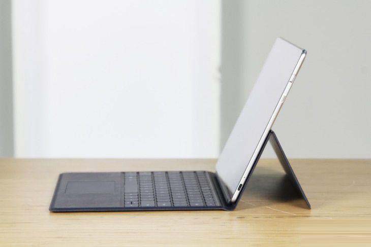 華為MateBook E的機身接口與市面上主流的二合一筆記本一樣,機身右下方配有一個USB Type-C接口(USB 3.1標準,10Gbps,兼充電接口),機身左上方配有一個耳機/麥克風二合一接口。