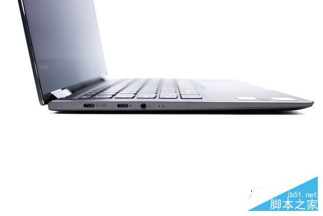 然后是機器的左邊,聯想設計了兩個USB Type-C接口和一個耳機麥克一體式接口,其中左邊的Type-C同時支持電源輸入。