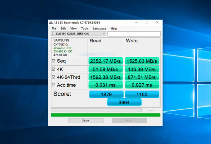 星曜900X5N搭載的自主研發(fā)生產(chǎn)的編號(hào)為CXY70K1Q的512GB PCIe固態(tài)硬盤,在AS SSD測(cè)試軟件取得了2352.17MB/s的讀取速度和1525.03MB/s的寫入速度的好成績,超越了市面上多數(shù)同級(jí)別的產(chǎn)品。4K讀寫和隨機(jī)讀寫性能也十分讓人滿意,好評(píng)!