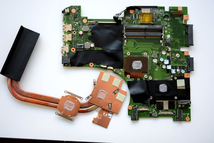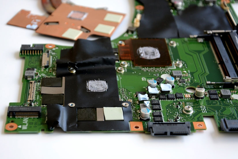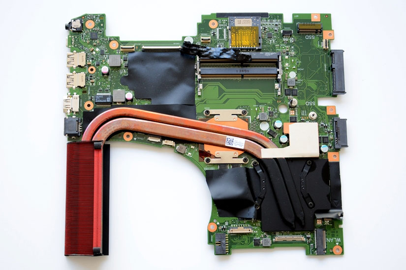 擰下處理器和顯卡上的固定螺釘,就可以把銅管取下了。可以看到所有被覆蓋的配件都使用了導(dǎo)熱硅脂和導(dǎo)熱膠片,用料十足。