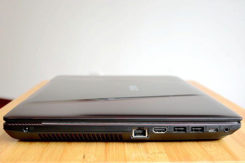 這款機(jī)身的厚度為3.0cm,算不上輕薄了,不過(guò)大家也了解游戲本,基本上都是傻笨重。左側(cè)的接口比較集中,包括散熱口和電源口也都在左側(cè)。