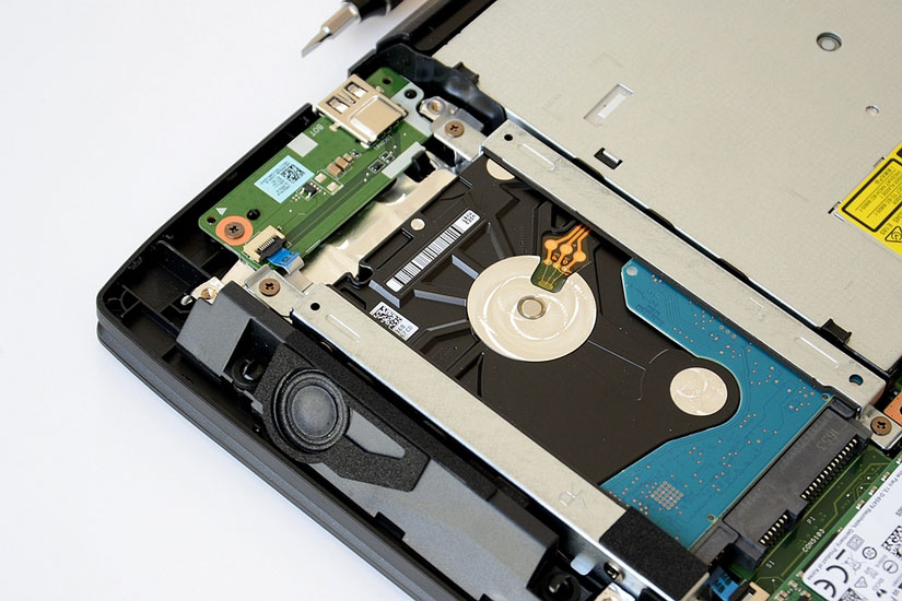 1TB機(jī)械硬盤,有固定架,4顆螺釘固定,很是牢固了。硬盤的側(cè)面是音箱。