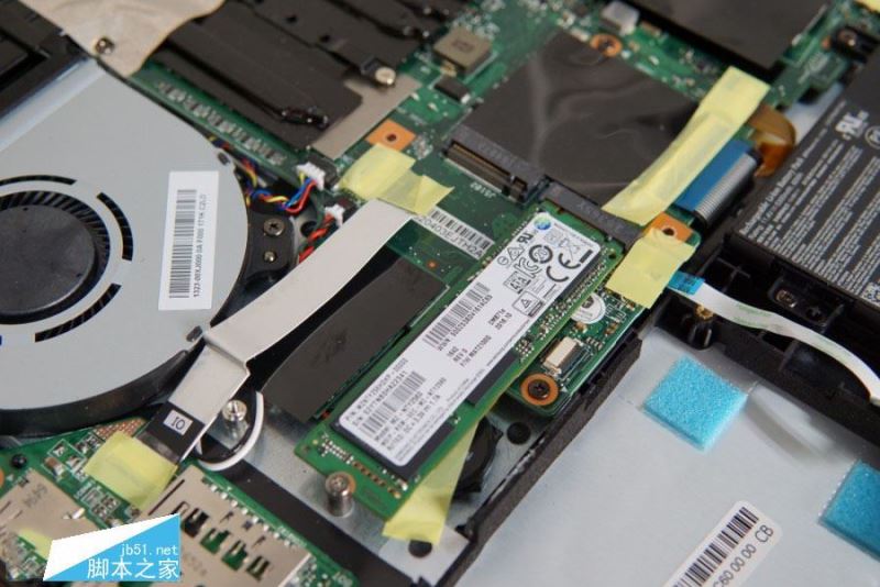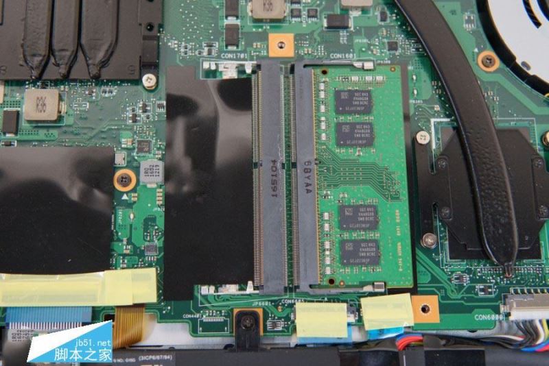 911Targa的內部布局相當規整,顯卡和CPU兩大高發熱器件保持了相當大的距離,其中GTX 1060顯卡被4條熱管覆蓋,i7-7700HQ處理器則為1條。左下角預留了2.5英寸硬盤空位,但并沒有硬盤托架和SATA接口提供,這意味著未來升級硬盤時需要尋求售后的幫助。
