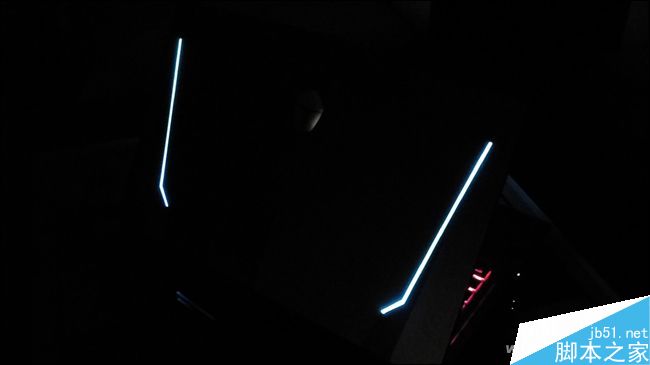 所以,雷神Dino在A面兩側加入了兩道脊梁,讓A面顯得更為立體。機身邊緣也通過削邊設計讓整機顯得更為動感,兩側的背光條和雷神Logo也能泛出藍色的背光,視覺效果非常酷,而雷神則將其稱為“新生藍”。