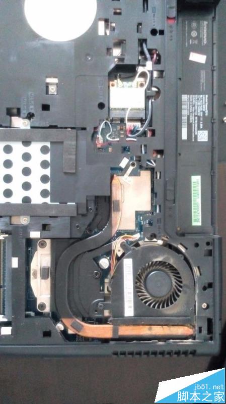 2、開后蓋:首先關(guān)機,拔掉電池,電池側(cè)蓋上有兩個螺絲,擰下,然后把后蓋按住向下推就把后蓋拆下來了.(有聯(lián)想保修標簽直接略過,一般保修不看標簽只看電腦的SN碼.)
