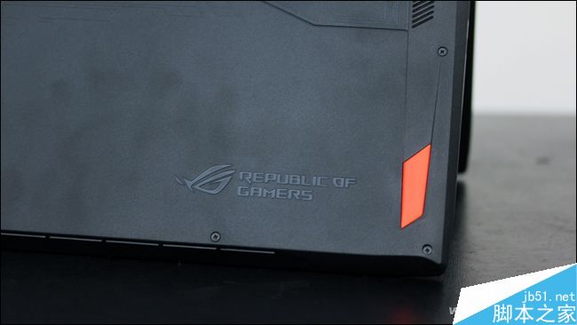 為了彰顯S5VM玩家國度的身份,該產(chǎn)品A面中心加入了ROG的Logo圖案,兩側(cè)的斜紋上也有兩道背光條,開機之后可以泛出熱烈的橙紅色背光。