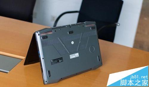 8、在底面,雷神911M同樣發(fā)揚了金屬色“太空科幻”風格,各種冷峻的線條配上金屬灰的顏色,讓人想起桌面上Nvidia大受好評的Titan 皮公版散熱器,魅力同樣不凡。其面積巨大的散熱窗和原型的音頻單元十分引人注目。