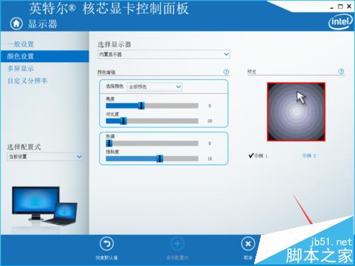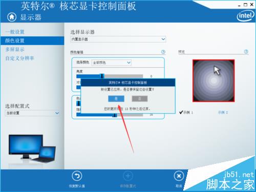 4、接下來我們需要調整飽和度,和許多電視機設置一樣很簡單。小編建議設置16度左右數值,設置好以后點擊應用這個時候大家就會發現屏幕顏色正常了。