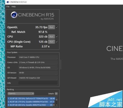4、相比老版本的R11.5最多支持16個(gè)核心來(lái)說(shuō),R15版本最多能夠支持256個(gè)邏輯核心,此外新版本還加強(qiáng)了著色器、抗鋸齒、陰影、燈光以及反射模糊等的考察,對(duì)CPU性能的檢測(cè)更加準(zhǔn)確。在這次的測(cè)試中可以看出,多線程測(cè)試得分為323cb分,在單線程測(cè)試中也達(dá)到了125cb分,這樣的測(cè)試分?jǐn)?shù)還是相當(dāng)強(qiáng)大,屬于這款處理器的正常范圍。