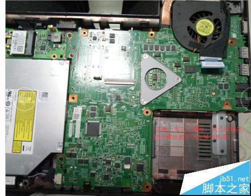 3、鍵盤拿掉后,拆掉鍵盤后面的面板螺絲,一共5個(gè)螺絲,我已經(jīng)標(biāo)注,大家拆的時(shí)候注意看清楚,看圖說話,螺絲去掉就可以去掉前面板的蓋子了,下來主板上有三個(gè)螺絲,我已經(jīng)標(biāo)注,擰開螺絲就可以去掉主板嘍。如圖