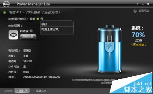 3、我們可以清楚地看到當(dāng)前電池的電量和型號,狀態(tài)信息