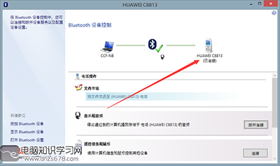 如果需要斷開連接,只需手機關閉藍牙或取消配對。以后打開藍牙自動連接不成功,打開藍牙控制面板,點擊“連接”即可。