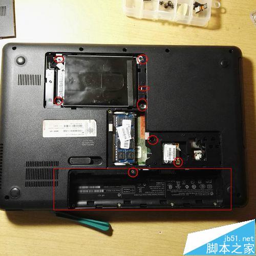 4、撬開后是這樣的,把螺絲旋下,自己分類放好,記住位子,別等下忘記是哪里的了,注意紅圈的地方。