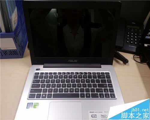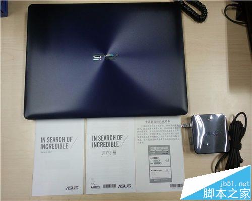 3、說完配件我們再來看看電腦,首先我們看到的是筆記本頂部,采用金屬質感的外殼給人很好的科技感,背面有簡單的產品信息說明。打開筆記本我們可以看到鍵盤依舊被軟布保護,細節之處能夠看到華碩的用心。屏幕的邊框比較的寬,稍微有點影響美觀。鍵盤部分采用的是金屬拉絲的面板以及分島式的按鍵使得商務氣息比較濃重。