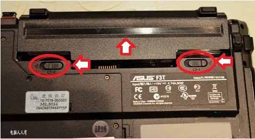 3、不同的筆記本電腦拆卸方法可能會不同,通常都有自鎖按鈕,拆除之前,先將鎖定按鈕解鎖,才能往外拔除。然后仔細查看鋰電池的金屬處是否有氧化,如有及時擦除(勿用金屬物,以免電路短路)。