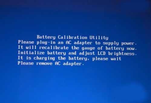10、充電完成,屏幕提示拔除電源適配器,開始放電,完成放電之后電腦會自動關閉的。