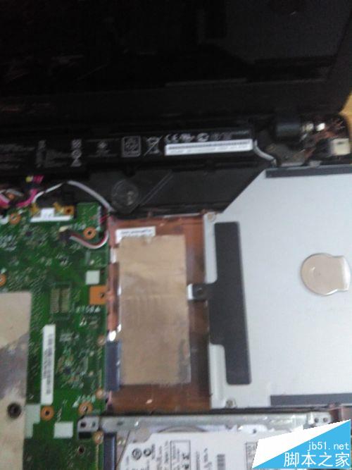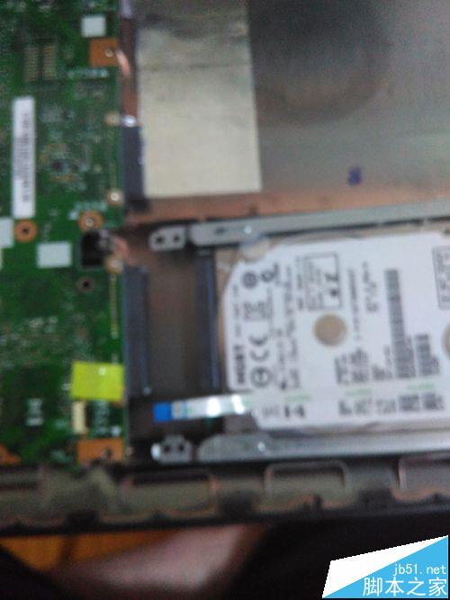 4、取下硬盤。硬盤有4顆螺絲,并且插在主板插槽中,擰下螺絲,向右上拔出硬盤,注意硬盤上的連接線,拔下兩面的連接線。