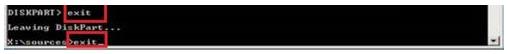 7、最后輸入“exit”命令并按回車鍵退出Diskpart模式,緊接著,再次輸入“exit”命令并按回車鍵退出CMD命令行模式,然后關閉Win7安裝界面重啟電腦。