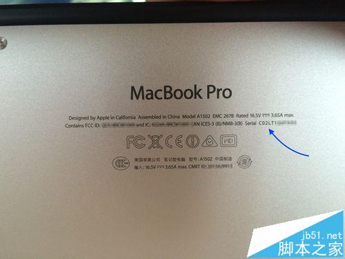1、除了上面二個方法以外,我們還可以通過 MacBook 本身的序列號來查詢。這里建議大家通過 MacBook 筆記本底部來查看機器的序列號,在底部找到 Serial 序列號,后面跟的就是序列號了。