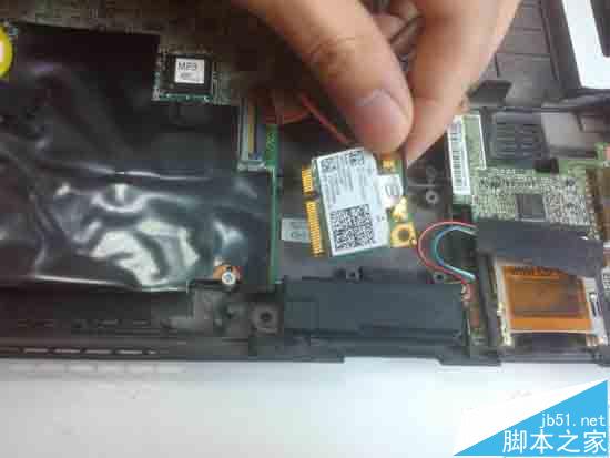 由于無線網卡固定著主板的一角,所以也要一起拆卸來。