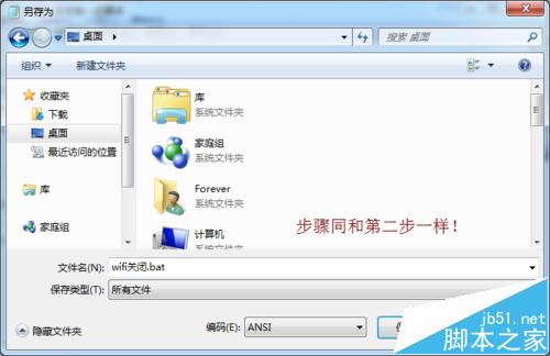 2、點擊左上角文件另存為--桌面--文件名格式以”.bat“結尾,如圖。
