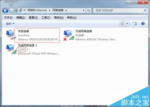 9、點擊左側網絡適配器,這里可以看到連接到電腦的本地網絡和剛剛創建的無線網絡。