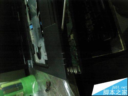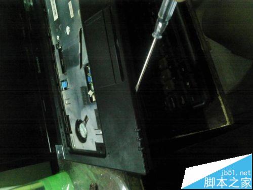 7、黑色處是風(fēng)扇的污漬,在這步前,背面要拆幾個(gè)螺絲,有固定呂殼的,卸開后直接將呂殼拿開即可,下面這步挺關(guān)鍵,是我自己琢磨出來的,用銀行卡沿邊緣一點(diǎn)一點(diǎn)離開AB殼