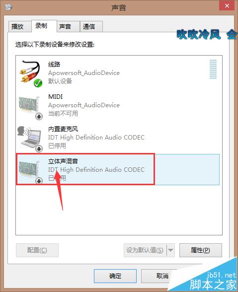 6、看到立體聲混音變灰,然后將聲音開開,沒有嗡嗡的啦