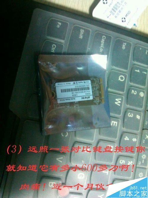 3、近照一張,蹩激動蹩激動蹩激動啊?。?!放在鍵盤上看看NGFF到底有多小。