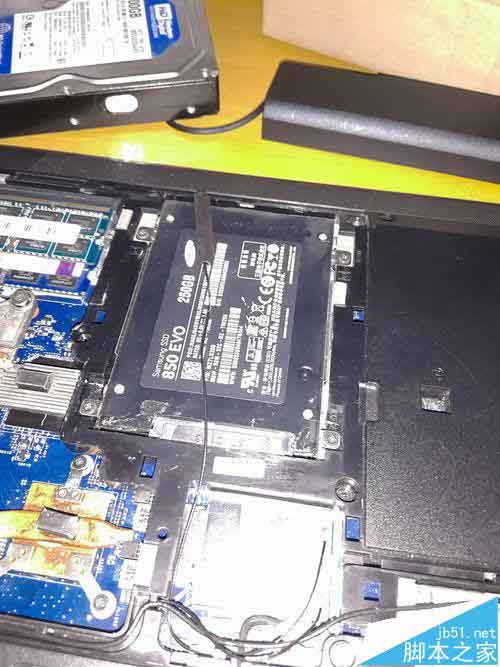 2、TP預留的NGFF接口瞅見沒?這既可以裝SSD也可以裝WWAN網卡,本人原先不知道這可以裝WWAN網卡所以買了個128G的ngff SSD后來知道可以裝WWAN網卡后悔萬分,又剁手買了塊SATA3的三星850EVO250G的SSD(圖中可見)原先的ngff SSD買了個PCIE的轉接板直接插家里臺式機的主板上,效果還不錯,比一般接SATA3要快