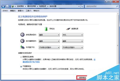 4、選好后單擊頁面右下角的“保存修改”。設定好之后就能實現一按電源鍵就關機了。