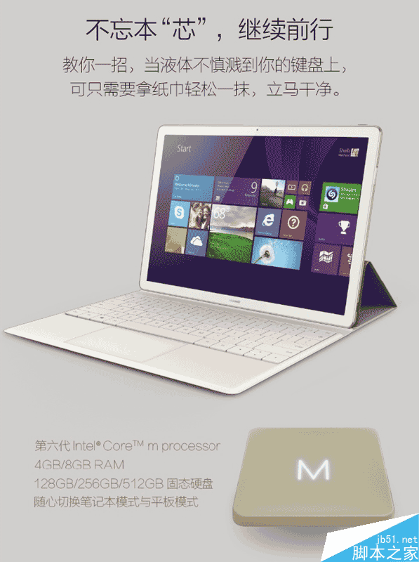 5、Intel Core m第六代酷睿超低壓處理器,4/8GB內存,128/256/512GB固態硬盤。