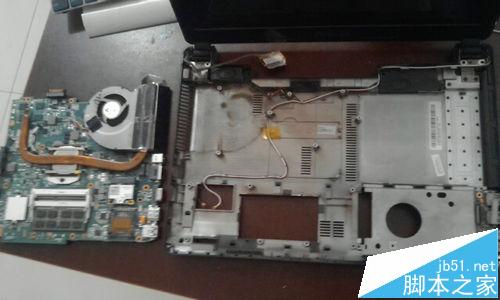 13、撬開后,把上殼拿到一邊。筆記本的主板就完全的裸露出來了。這里,我們把主板上的螺絲也擰下來。