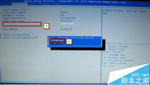 2、在Advancd下面找到Intenal Pointing Device改為disabled就可以了