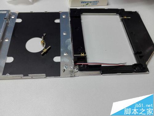 4、把原來的光驅位支架,用刀子按照硬盤和轉接頭的大小摳出相應的槽。