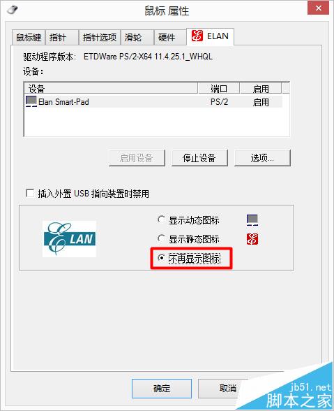 6、我們只要把“不再顯示圖標”勾選。這樣我們他在通知區域就不顯示了。