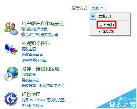 2、把“查看方式”改為“大圖標”或者“小圖標”。