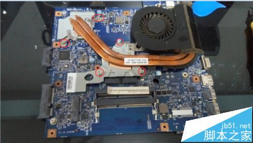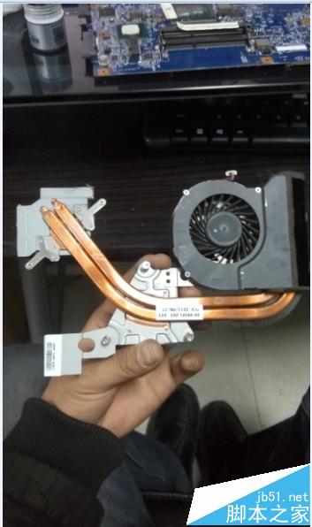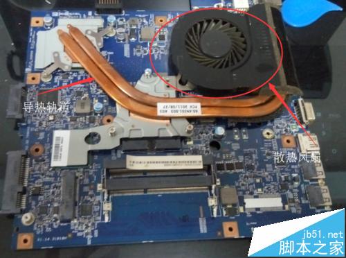 9、圖一中就是我們的主角主板了,我們清理的主要是主板上的東西,我們?cè)诓鸪陨喜糠謺r(shí)候會(huì)看到有灰塵順手處理掉就可以了,拿出主板后將主板反過(guò)來(lái)我們會(huì)看到一個(gè)散熱風(fēng)扇和散熱銅導(dǎo)軌。先用刷子輕輕掃動(dòng)風(fēng)扇口然后用嘴用力向它吹氣(用嘴實(shí)在是無(wú)奈之舉,有大功率吹風(fēng)機(jī)的最好用吹風(fēng)機(jī)),風(fēng)扇建議就清理到散熱口無(wú)灰塵堆積即可不建議拆開風(fēng)扇,這個(gè)筆記本的風(fēng)扇不好更換。