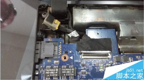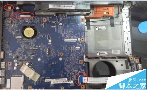 第二部分圖四所示我們將這個(gè)排線和鍵盤排線拆除一樣拿下來(lái),這是耳機(jī)插孔的排線。完成這兩部分的拆除我們就可以從右側(cè)輕輕抬起主板了,然后拿下放在一邊。