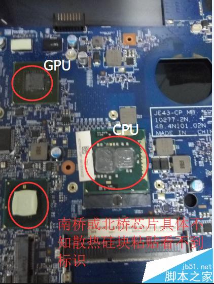 10、要換硅膠我們要拿下導(dǎo)軌,我們可以看到圖一中的幾個(gè)紅圈里面的螺絲擰開,注意這幾個(gè)螺絲是那不下來(lái)的只要離開螺紋口即可,我們拿下散熱導(dǎo)軌這個(gè)時(shí)候我們就看到風(fēng)扇跟著一起下來(lái)了,他們是一體的所以風(fēng)扇如果損壞了成本就會(huì)很高了,拿下的導(dǎo)軌如圖二所示。將導(dǎo)軌反面與CPU、GPU結(jié)合部分的硅膠擦干凈,主板上CPU上和GPU上的硅膠也擦干凈,南橋就是有一大塊白色固體粘合的那部分建議不要清理那個(gè)應(yīng)該是導(dǎo)熱硅塊,因?yàn)椴缓觅?gòu)買,專業(yè)售后才有的東西。