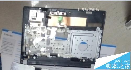 7、拆除排線后我們開始拆除面板,就是裝鍵盤并且上邊帶開機(jī)鍵的那個(gè)面板有人說(shuō)叫C面具體我也不清楚,總之就是鍵盤那個(gè)面,從面的邊緣縫隙處將手指甲(不夠長(zhǎng)的就別逞強(qiáng)了)或拆機(jī)用的撬棒(其他薄薄的塑料工具也可以)插入縫隙慢慢滑動(dòng)一周,一路會(huì)聽到卡卡聲那是卡扣分離時(shí)候的聲音,劃動(dòng)的時(shí)候一定要用力均勻不能用太大力或偏離軌道,劃動(dòng)一周后面板就可以拿起來(lái)放在一邊了。