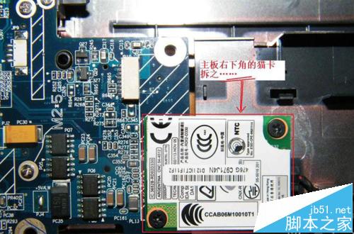 8、筆記本主板下面的貓卡螺釘去掉,然后取下貓卡