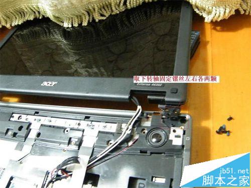 7、取下屏幕左右轉(zhuǎn)軸兩顆螺絲