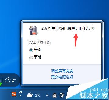 1、打開筆記本電腦之后,在電腦的右下角有電源標注,點開,發現如圖情況,則說明電池沒有充電