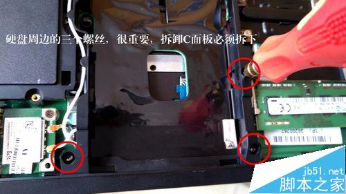 2、準備好工具,按圖索驥。拆掉圖中紅圈處的螺絲。